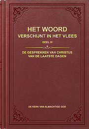 Almachtige God, Christus van de laatste dagen, die is verschenen om Zijn werk te doen, drukt alle waarheden uit die de mensheid zuiveren en redden. Deze zijn allemaal opgenomen in ‘Het Woord verschijnt in het vlees’. Hierdoor is wat in de Bijbel geschreven staat vervuld: “In het begin was het Woord, het Woord was bij God en het Woord was God” (Johannes 1:1). Wat betreft ‘Het woord verschijnt in het vlees’, is dit de eerste keer sinds de schepping van de wereld dat God de gehele mensheid heeft aangesproken. Deze uitspraken vormen de eerste tekst van God onder de mensen waarin Hij mensen ontmaskert, oordeelt en openhartig tegen hen spreekt. Daarom zijn het ook de eerste uitspraken waarmee God de mensen bekendmaakt met Zijn voetstappen, Zijn verblijfplaats, Zijn gezindheid, wat Hij heeft en is, Zijn gedachten en Zijn zorgen over de mensheid. Je zou kunnen zeggen dat dit Gods eerste uitspraken zijn voor de mensheid vanuit de derde hemel sinds de schepping en dat dit de eerste keer is dat God Zijn inherente identiteit gebruikt om aan de mens te verschijnen en hem met woorden bekend te maken met de stem van Zijn hart. Het Woord verschijnt in het vlees (afgekort als Het Woord), uitgedrukt door Christus van de laatste dagen, Almachtige God, bestaat op dit moment uit zeven boeken: Deel I: De verschijning en het werk van God; Deel II: Over het kennen van God; Deel III: De gesprekken van Christus van de laatste dagen; Deel IV: Antichristen ontmaskeren; Deel V: De verantwoordelijkheden van leiders en werkers; Deel VI: Over het nastreven van de waarheid en Deel VII: Over het nastreven van de waarheid. -