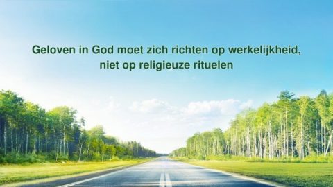 Het was mijn Vader geweest die van mij getuigde, maar ik probeer grotere glorie te ontvangen en getuigenissen uit de monden van de schepsels te krijgen. Dus geef ik mijn alles aan jullie zodat jullie aan jullie plicht kunnen voldoen, en daardoor mijn werk onder de mensen tot een einde kunnen brengen. Jullie zouden moeten begrijpen waarom jullie in mij geloven. Als jullie mij alleen maar volgen om mijn leerling of mijn patiënt te zijn, of om een van mijn heiligen in de hemel te worden, dan zal jullie navolging van mij betekenisloos zijn. Om mij op zo’n manier te volgen, is gewoon verspilde moeite; om zo’n manier van vertrouwen in mij te hebben, is slechts jullie dagen en jullie jeugd verspillen. En uiteindelijk ontvangen jullie niets. Is dit niet werk voor niets? Ik ben al lang vertrokken van de Joden en ben niet langer een arts van de mens of het medicijn voor de mens. Ik ben niet langer een lastdier voor de mens om te drijven of te slachten naar believen; ik ben eerder onder de mensen gekomen om de mens te oordelen en te tuchtigen, en zodat de mens mij kan leren kennen. Je zou moeten weten dat ik ooit het werk van de verlossing deed; eens was ik Jezus, maar ik kon niet voor altijd Jezus blijven, net zoals ik eens Jehova was, maar later Jezus werd. Ik ben de God van de mensheid, de Heer van de schepping, maar ik kan niet voor eeuwig Jezus blijven of voor altijd Jehova blijven. Ik ben geweest wat men als arts beschouwt, maar er kan niet gezegd worden dat God slechts een arts is voor de mensheid. Dus als je oude inzichten hebt betreffende je geloof in mij, dan zul je niets bereiken. Het maakt niet uit hoe je mij nu vereert: "Hoe liefhebbend is de God van de mens; Hij geneest mij en geeft me zegeningen, vrede en vreugde. Hoe goed is God voor de mens; als we gewoon vertrouwen in Hem hebben, hoeven we ons geen zorgen te maken om geld en rijkdom …,” ik kan mijn oorspronkelijke werk nog steeds niet onderbreken. Als je vandaag in mij gelooft, zul je alleen maar mijn glorie ontvangen en waardig zijn om voor mij te getuigen, en al het andere zal secundair zijn. Dit moet je duidelijk weten.